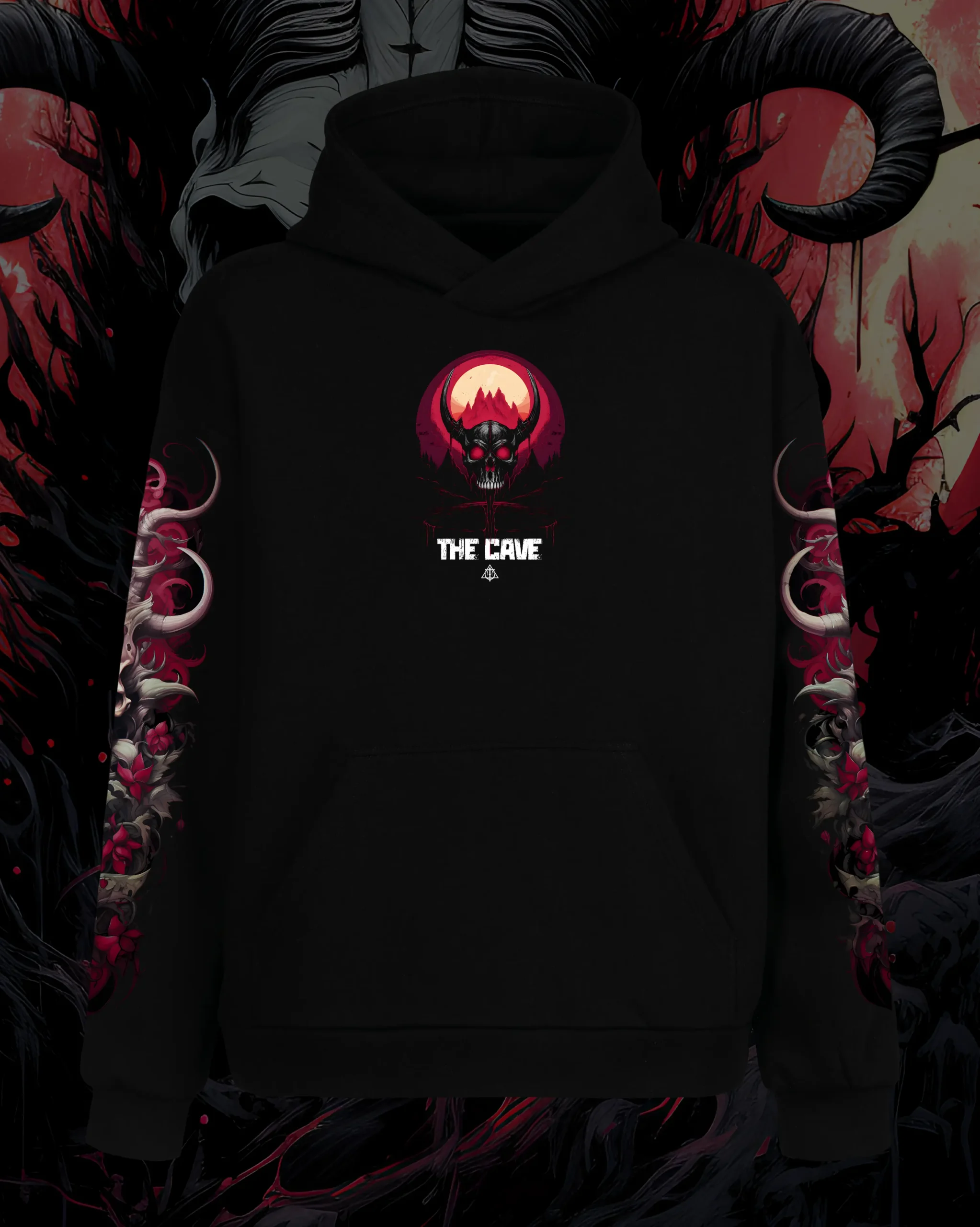 A horned skull emerges from twisted roots beneath a bleeding moon—haunting, bold, unforgettable. Dark Dreams is for those who wear their intensity with pride. Premium streetwear crafted to speak without words—because real presence doesn’t shout, it lingers.