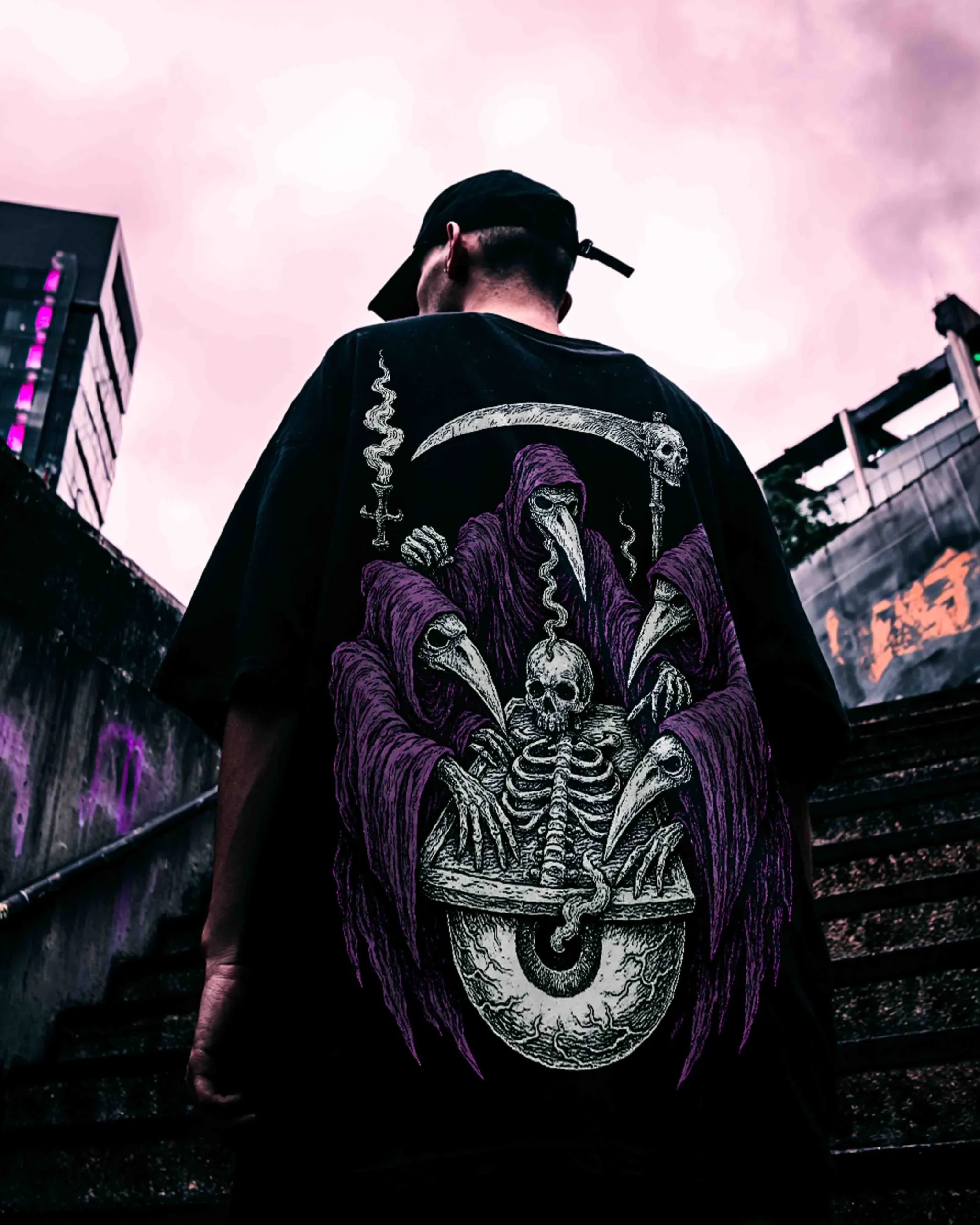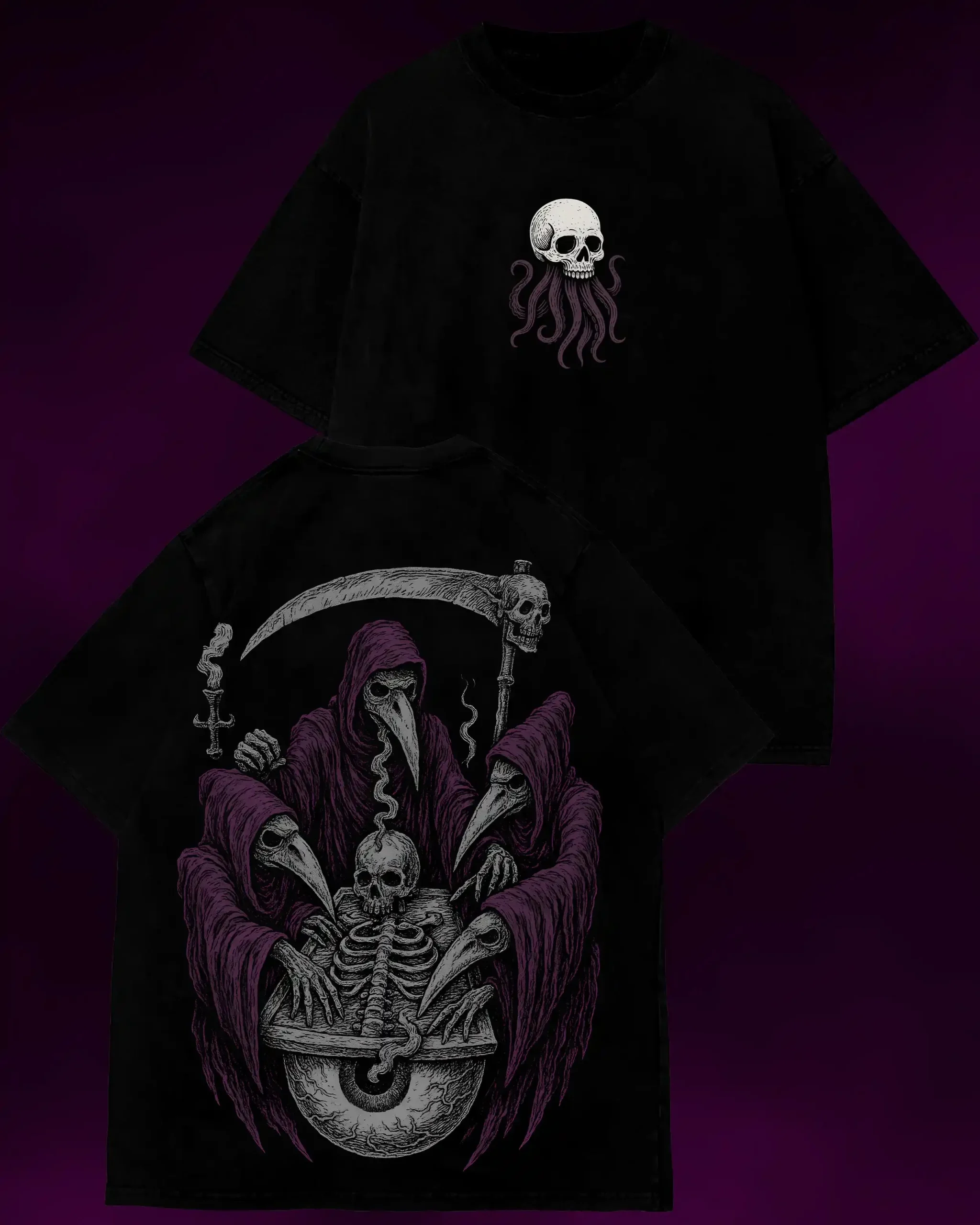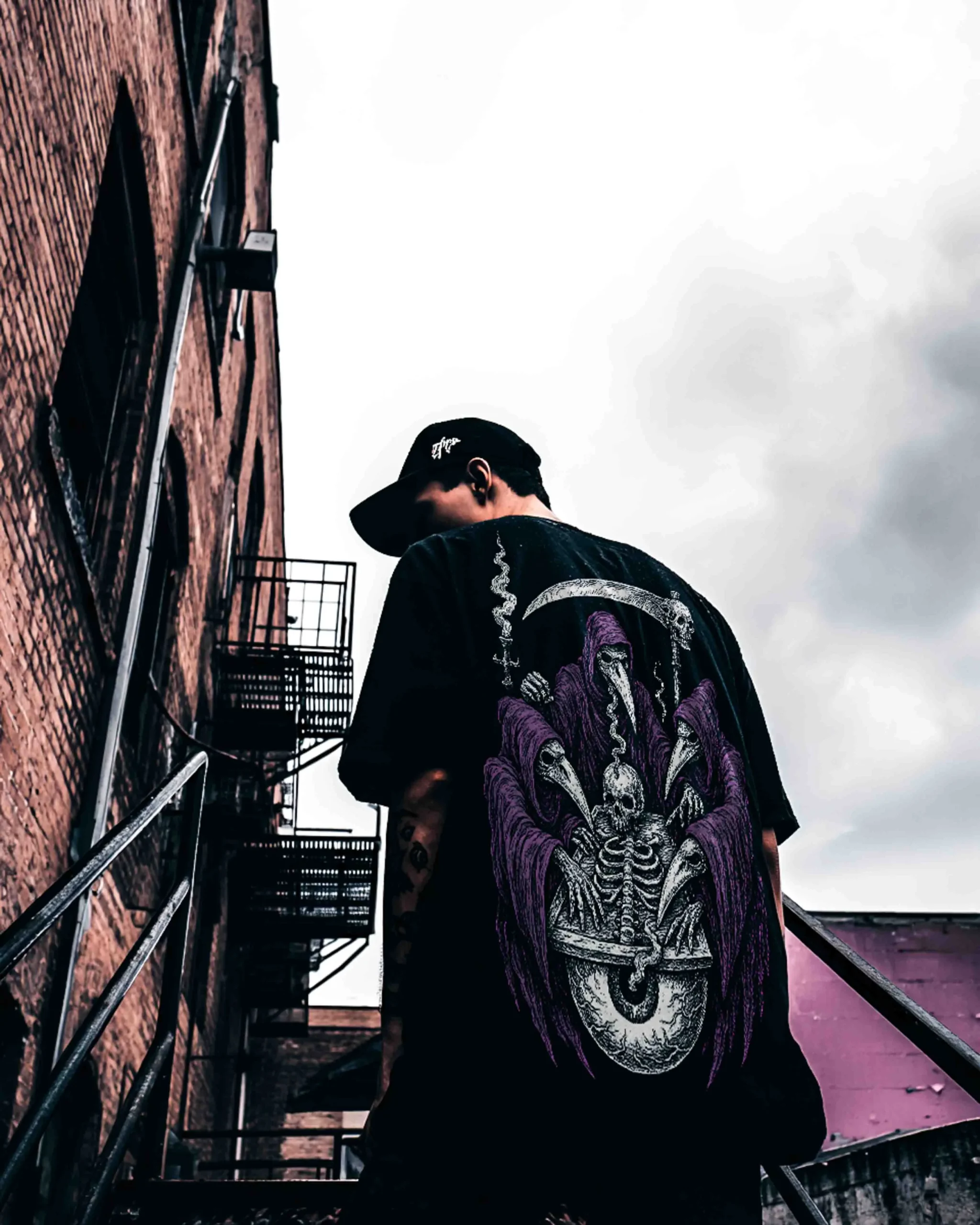 Detailed in bone and ritual, it’s printed with precision on dense, high-quality cotton. Bold enough to turn heads — subtle enough to keep them guessing. You won’t go unnoticed.
